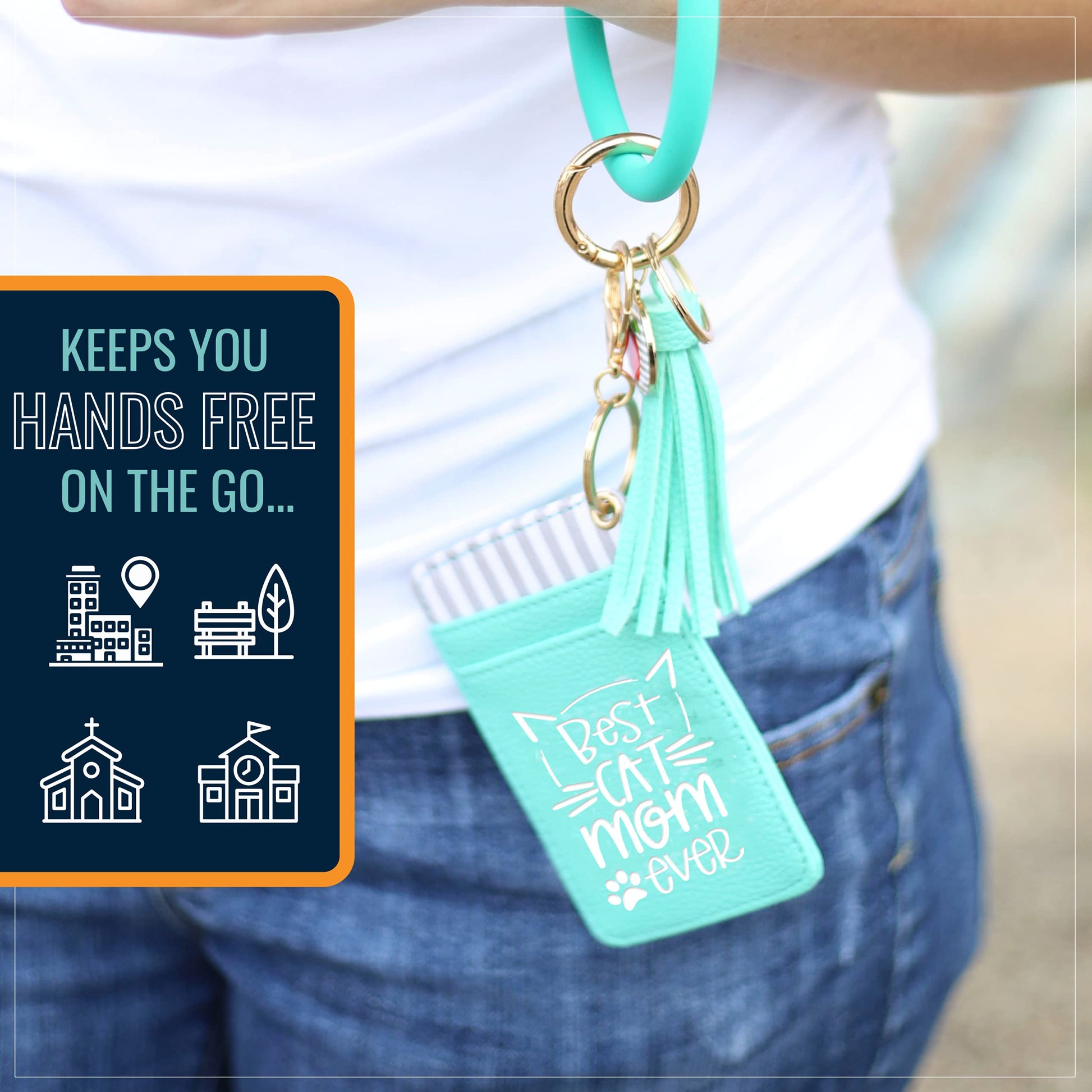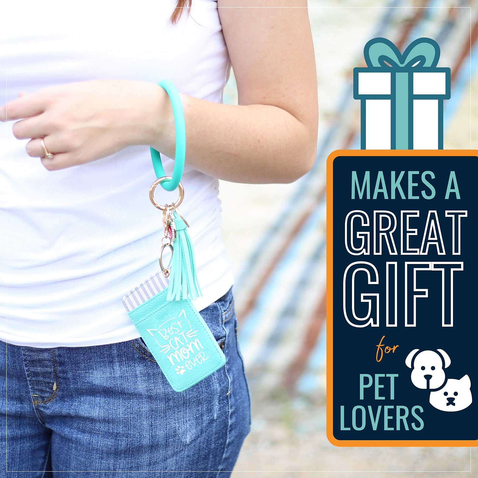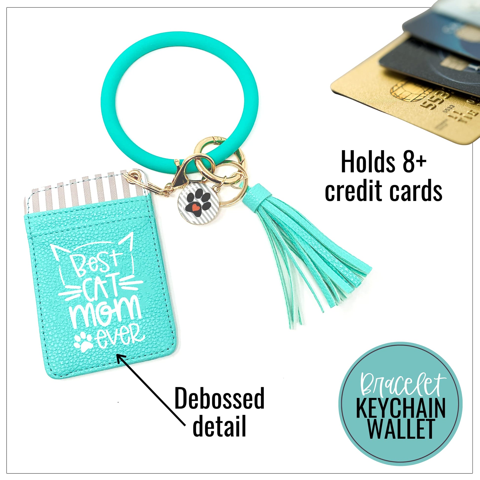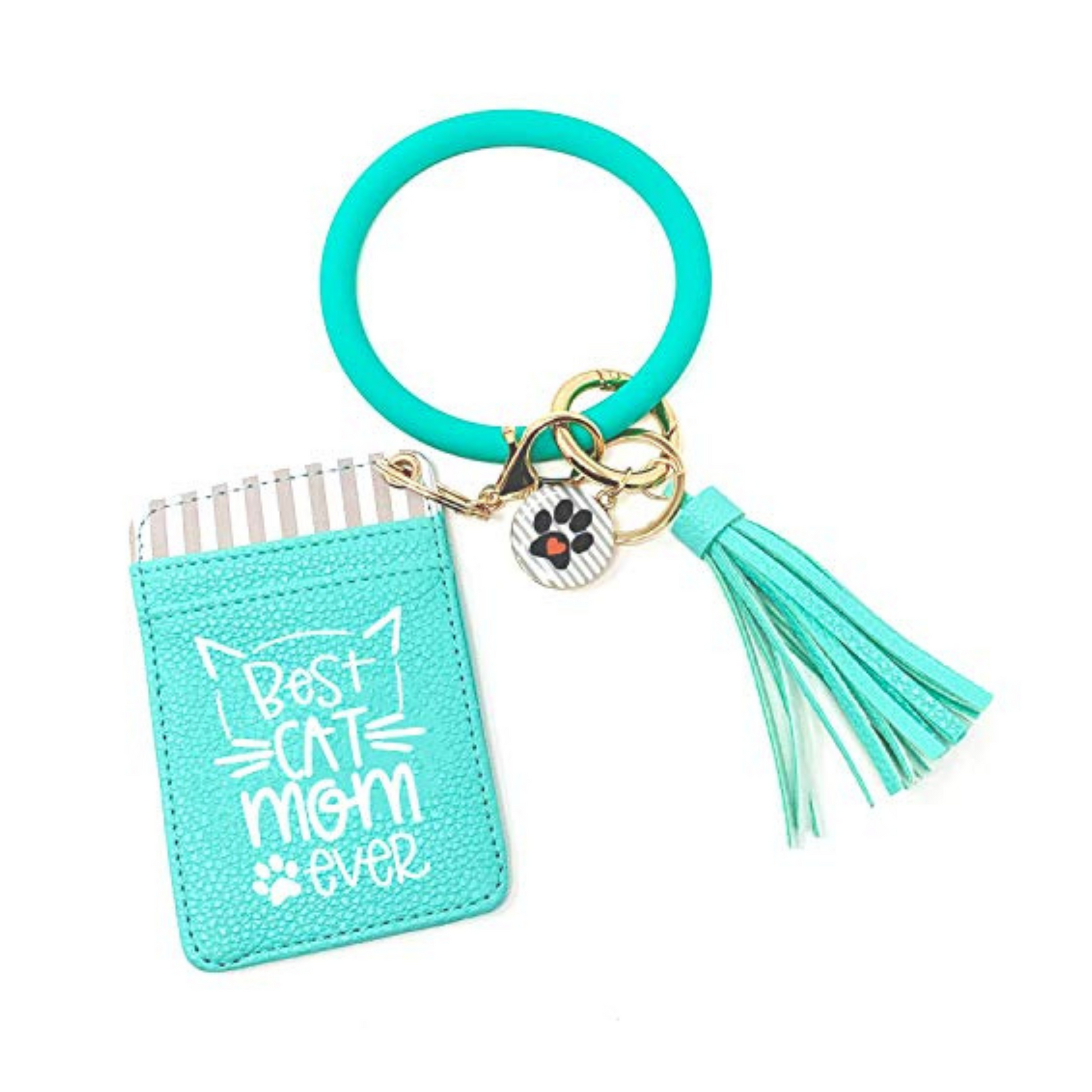 Best Cat Mom Ever Teal Silicone Bracelet Keychain Wallet for Cat Lovers