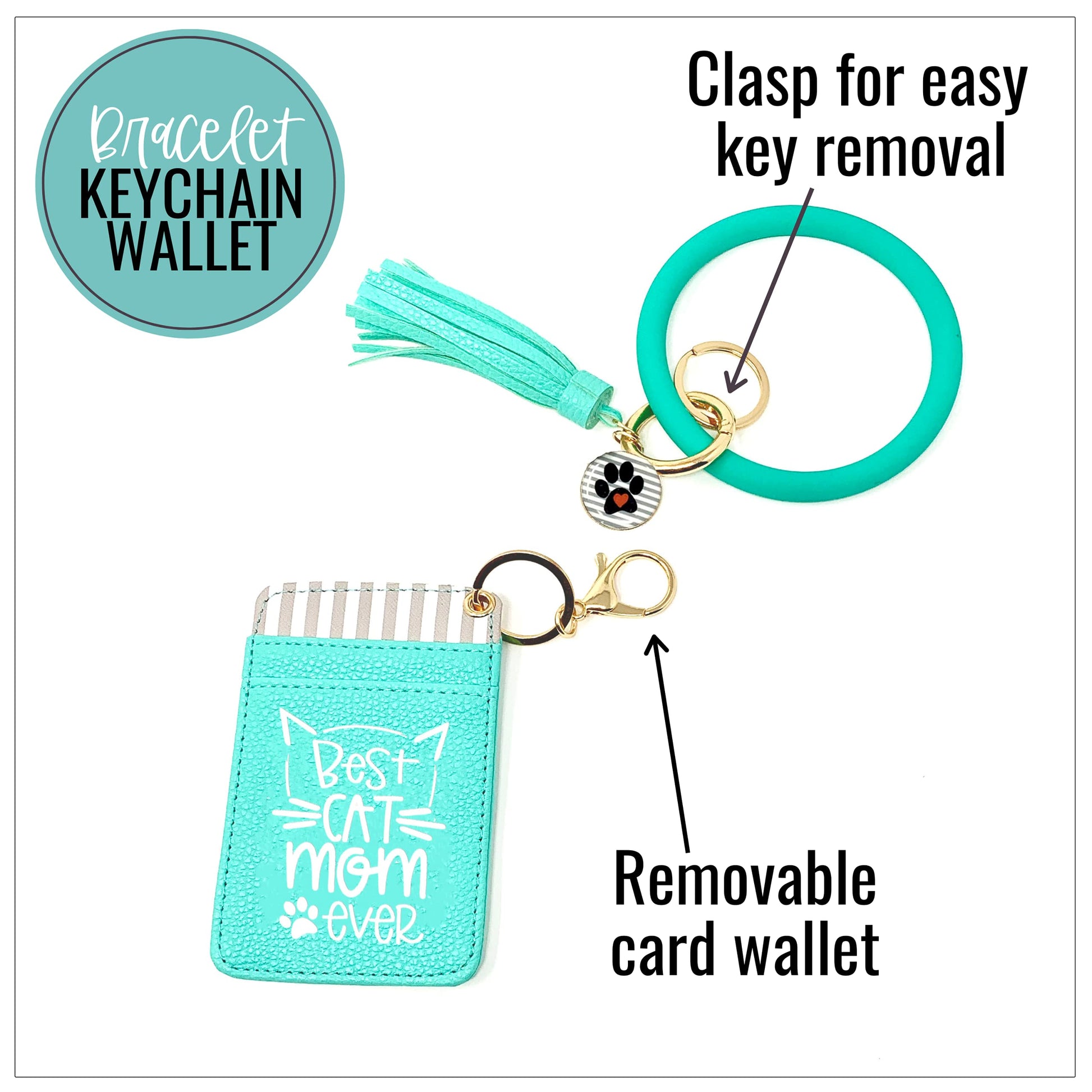 Take your bracelet keychain to the hospital, work, beach, pool, give it to your kids, you won't need to worry about it. In true Brooke & Jess Designs fashion, these pet lover keychain wallets come customized with fun cat mom sayings making them the perfect unique gift items for mother's and more!
