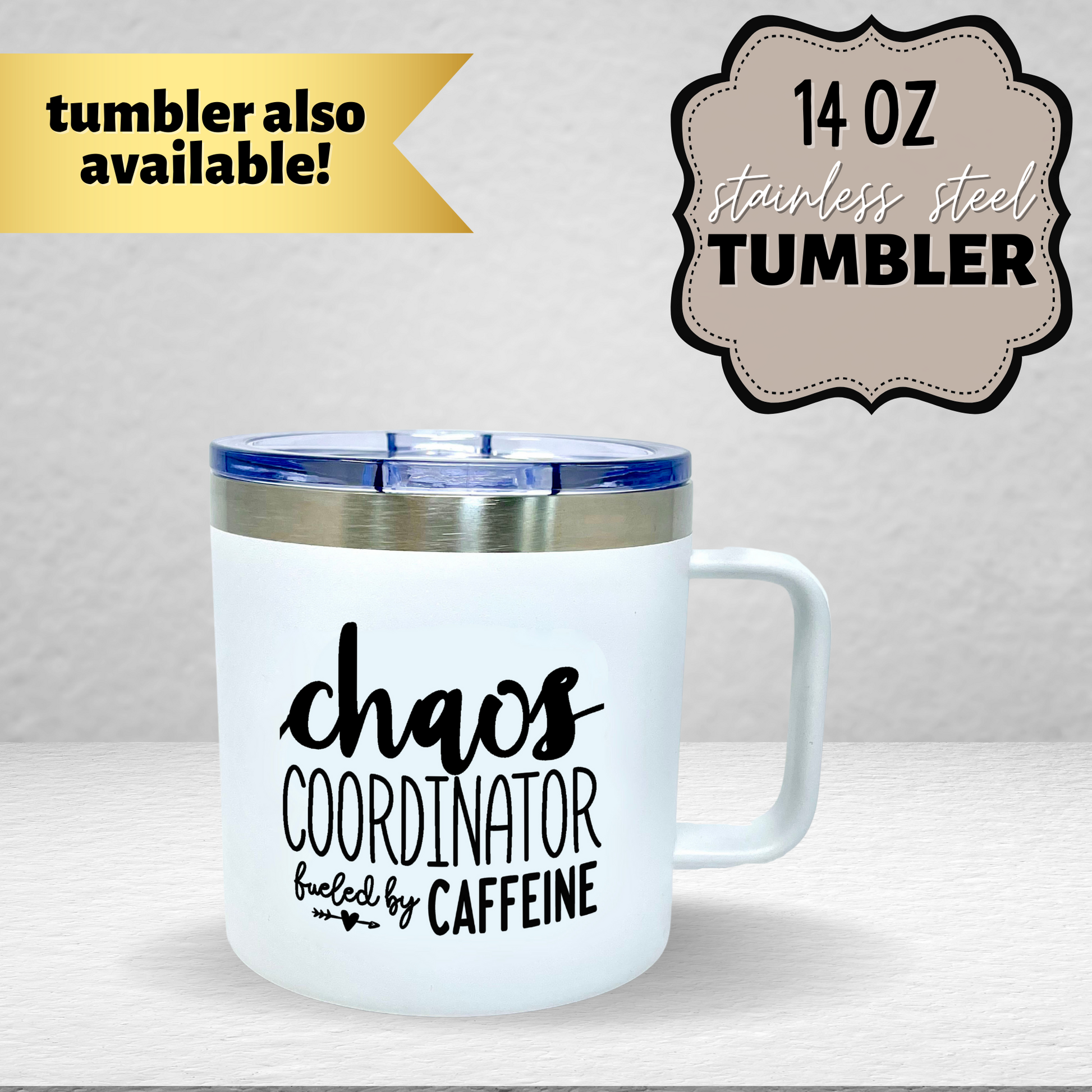 CUSTOM DESIGN PERFECT FOR YOU: All of our mugs are custom designed to give our customers the most fun and unique coffee mugs available! This unique coffee mug has Chaos Coordinator fueled by Caffeine printed on both sides of the travel mug.