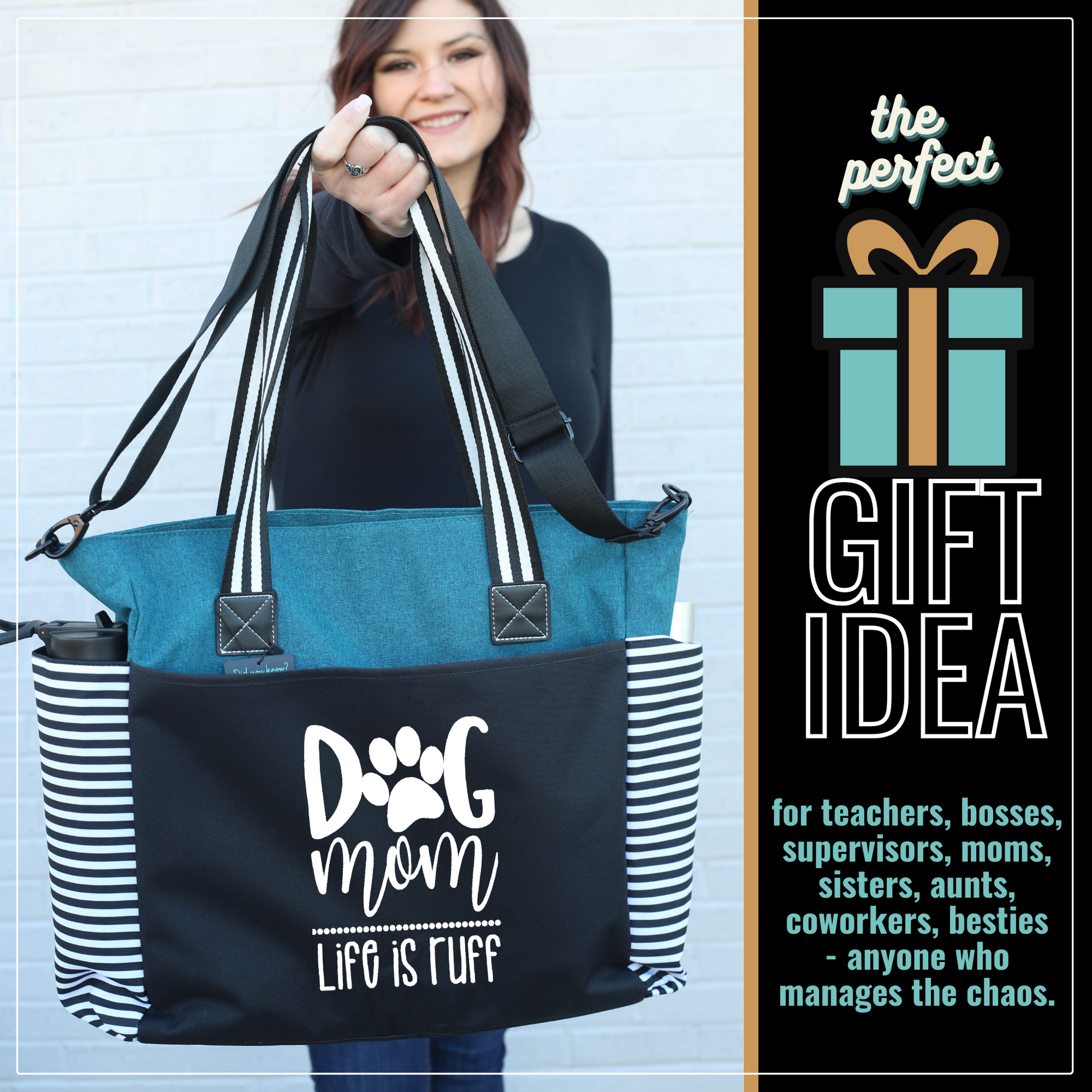 This premium tote bag is made to last with sturdy canvas material and is fully lined inside with cute black and white striped nylon material. Also features a cute, comfy 28” handle, along with a removable and adjustable shoulder strap for ease of carrying!. Strong and comfortable to tote around all of your favorite stuff to travel, work or just around town!