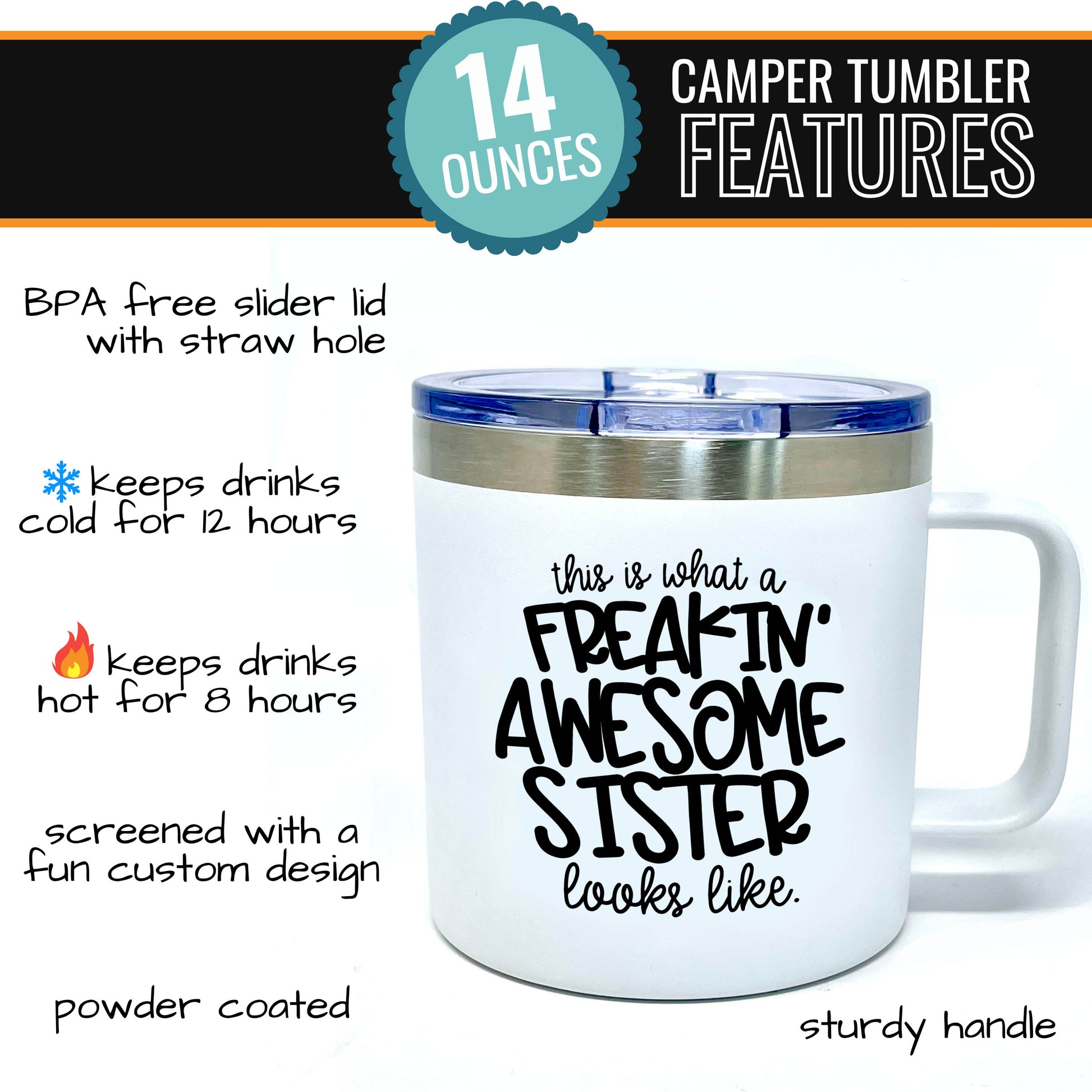 Freakin' Awesome Sister White 14 oz Camper Tumbler