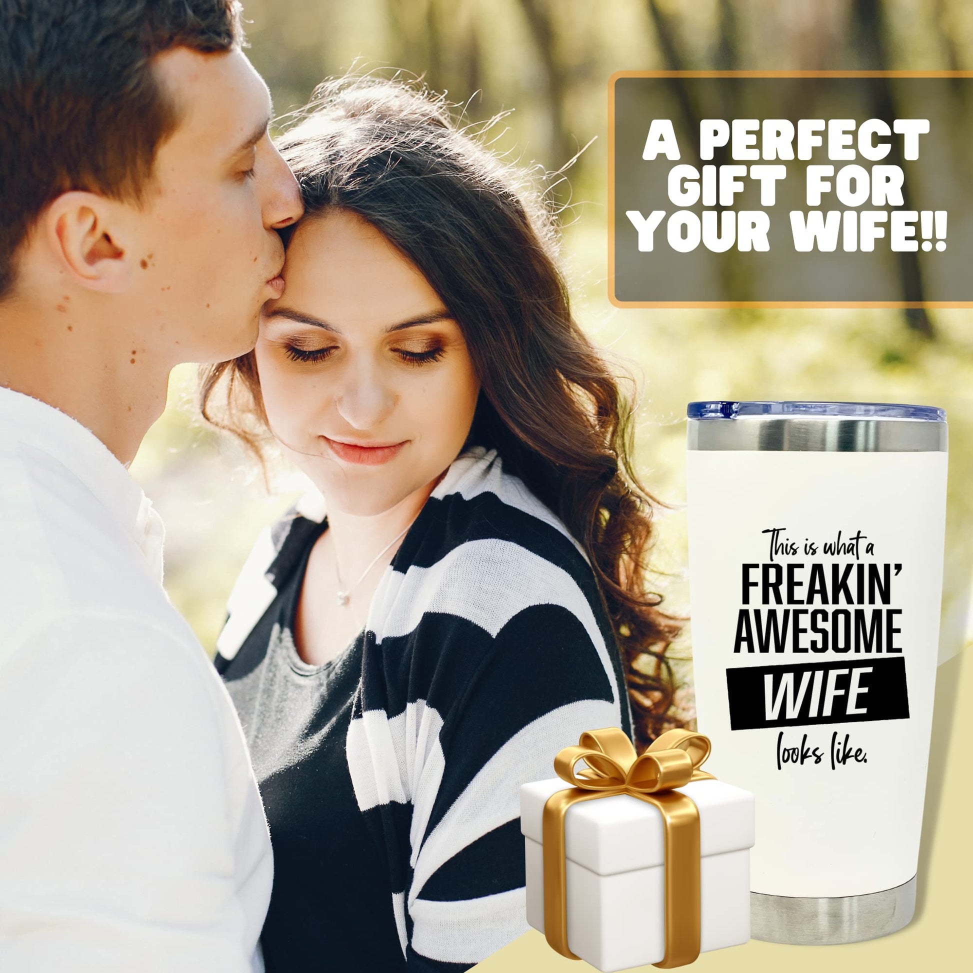 Freakin' Awesome Wife 20 oz White Tumbler for Wife - Outlet Deal Texas