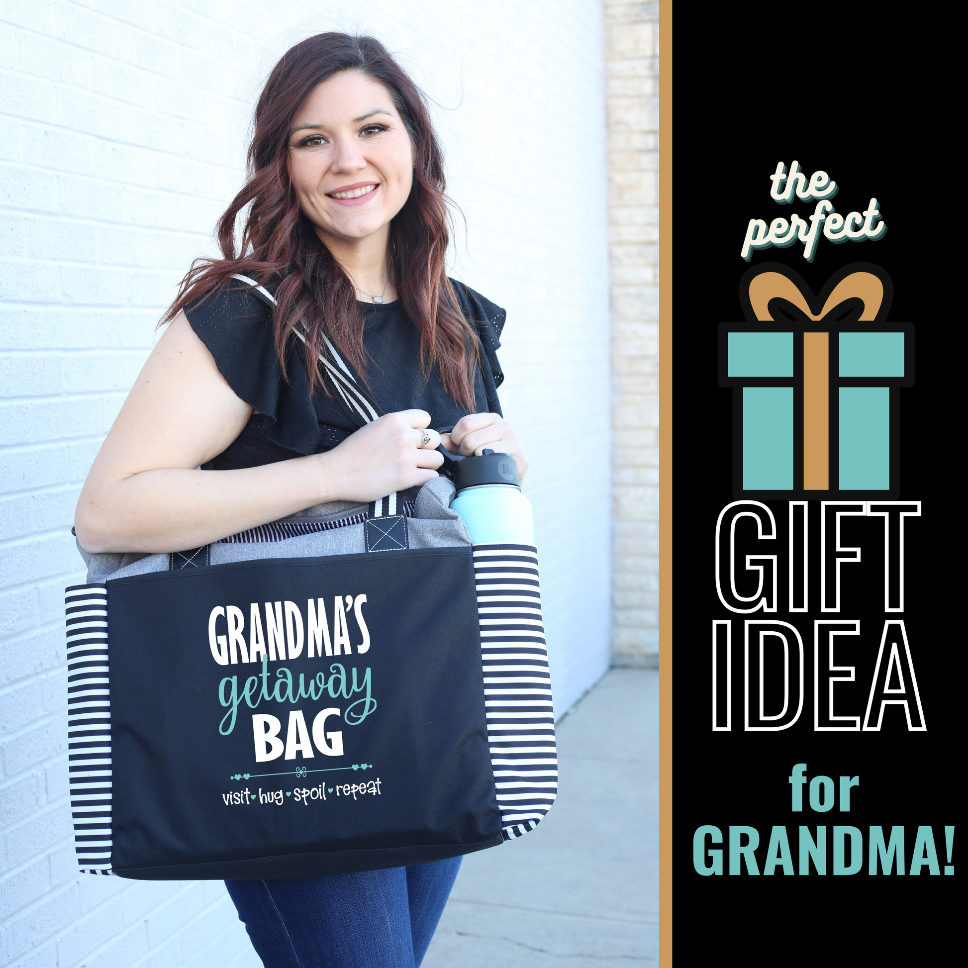 This Grandma Getaway LouLou Gray Tote Bag is just the thing for Grandmothers ready to hit the road! It's got a large capacity for all her goodies, is super sturdy so she won't have to worry about spills, and it's just plain fun to show off! Grandma, it's time to get going!