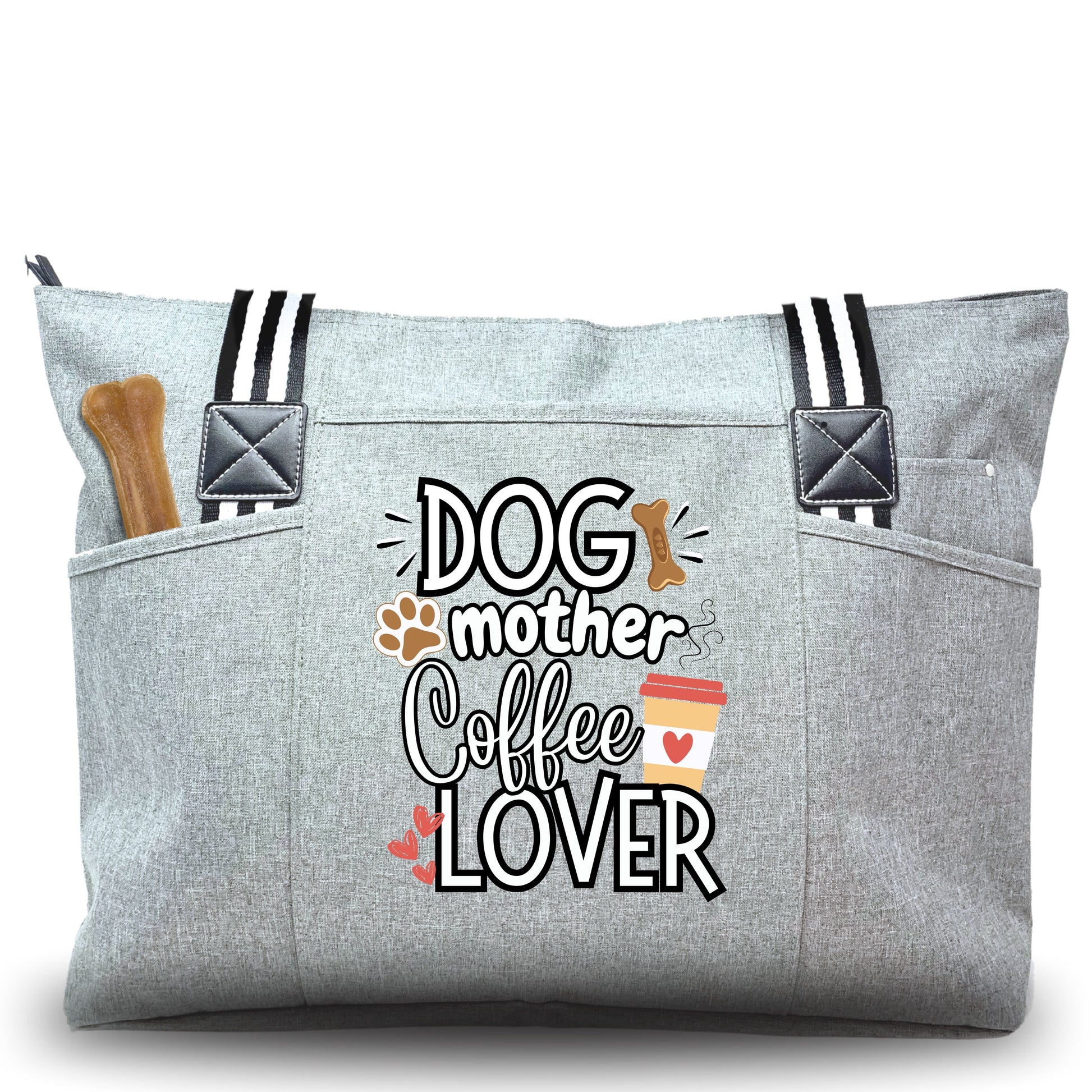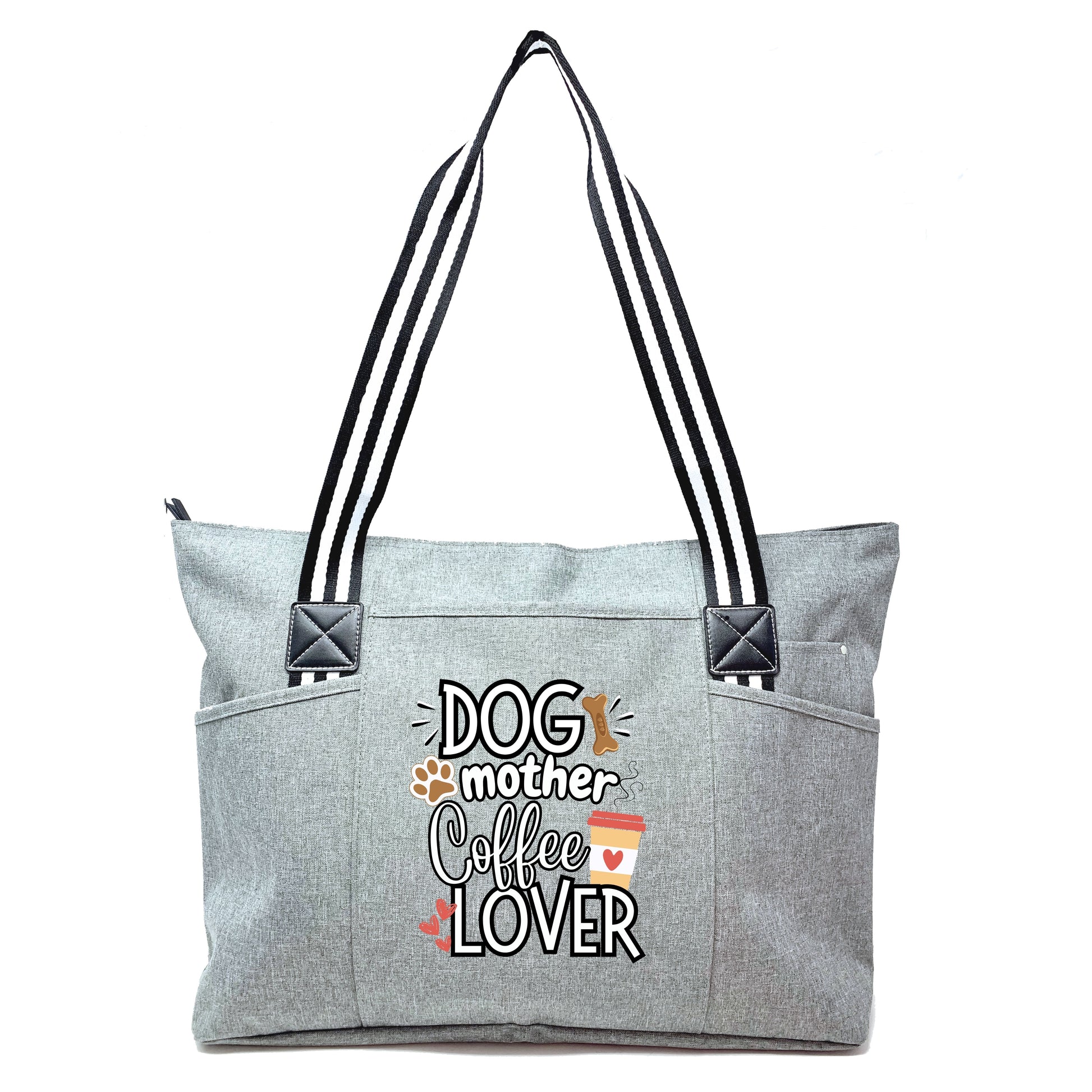 - LARGE TRAVEL LAPTOP TOTE BAG FOR DOG LOVERS: Show your favorite dog mother some love with this cute, fun, unique custom nana tote bag designed especially for those amazing grandmas!. Has the dog appreciation saying "Dog Mother Coffee Lover" screen printed on the front pocket of the large travel laptop tote bag.