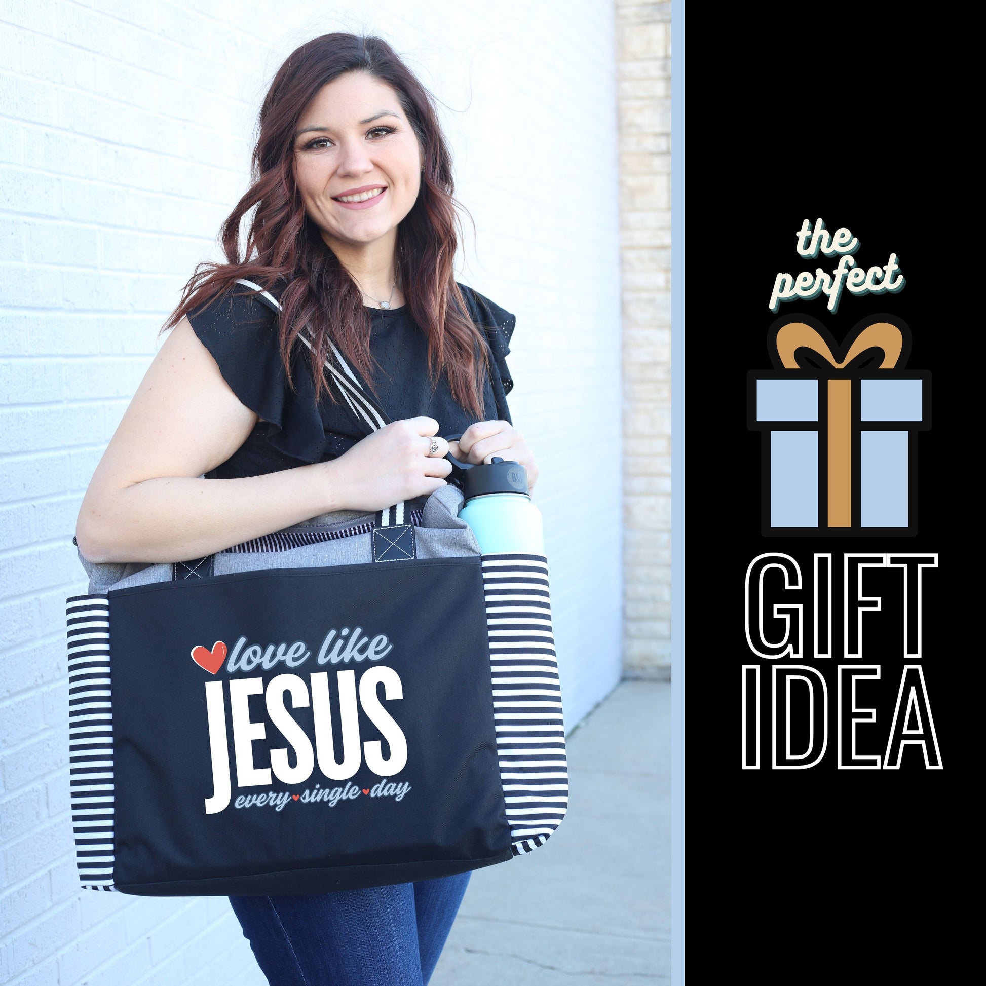 Love Like Jesus Gray LouLou Tote Bag with 15 Pockets