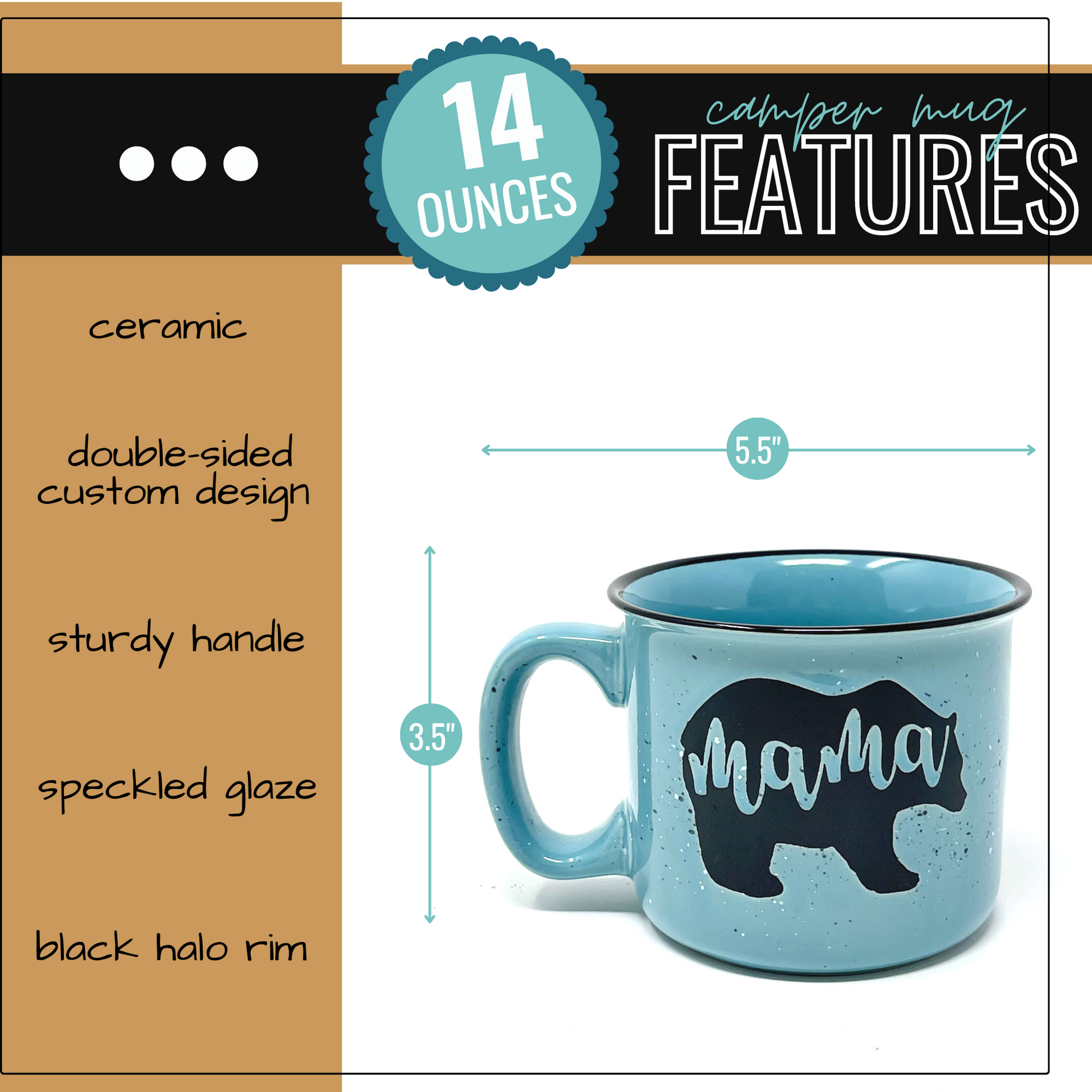 Mama Bear 14oz Teal Ceramic Mug for Moms