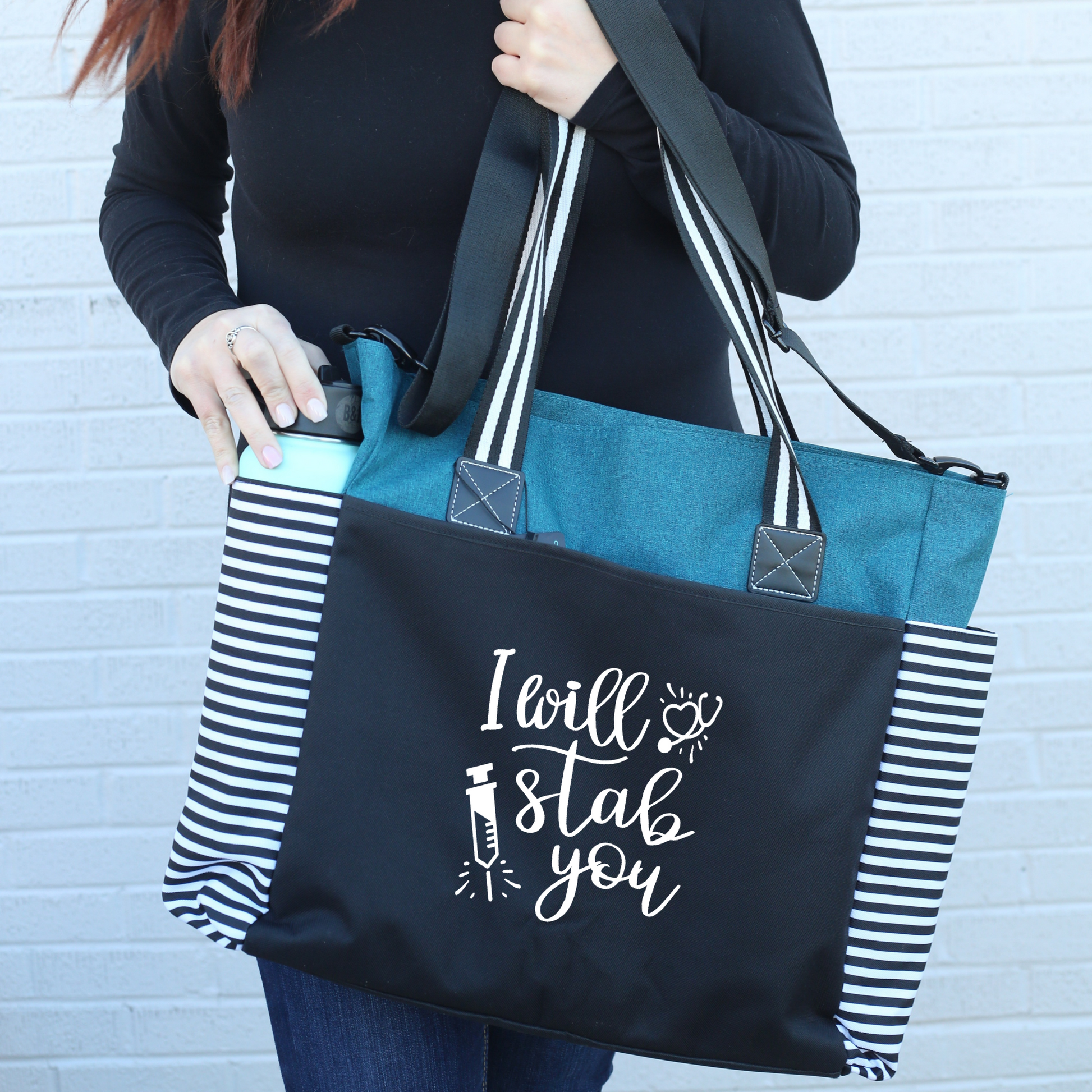 I Will Stab You LouLou Teal Tote Bag for Medical Workers